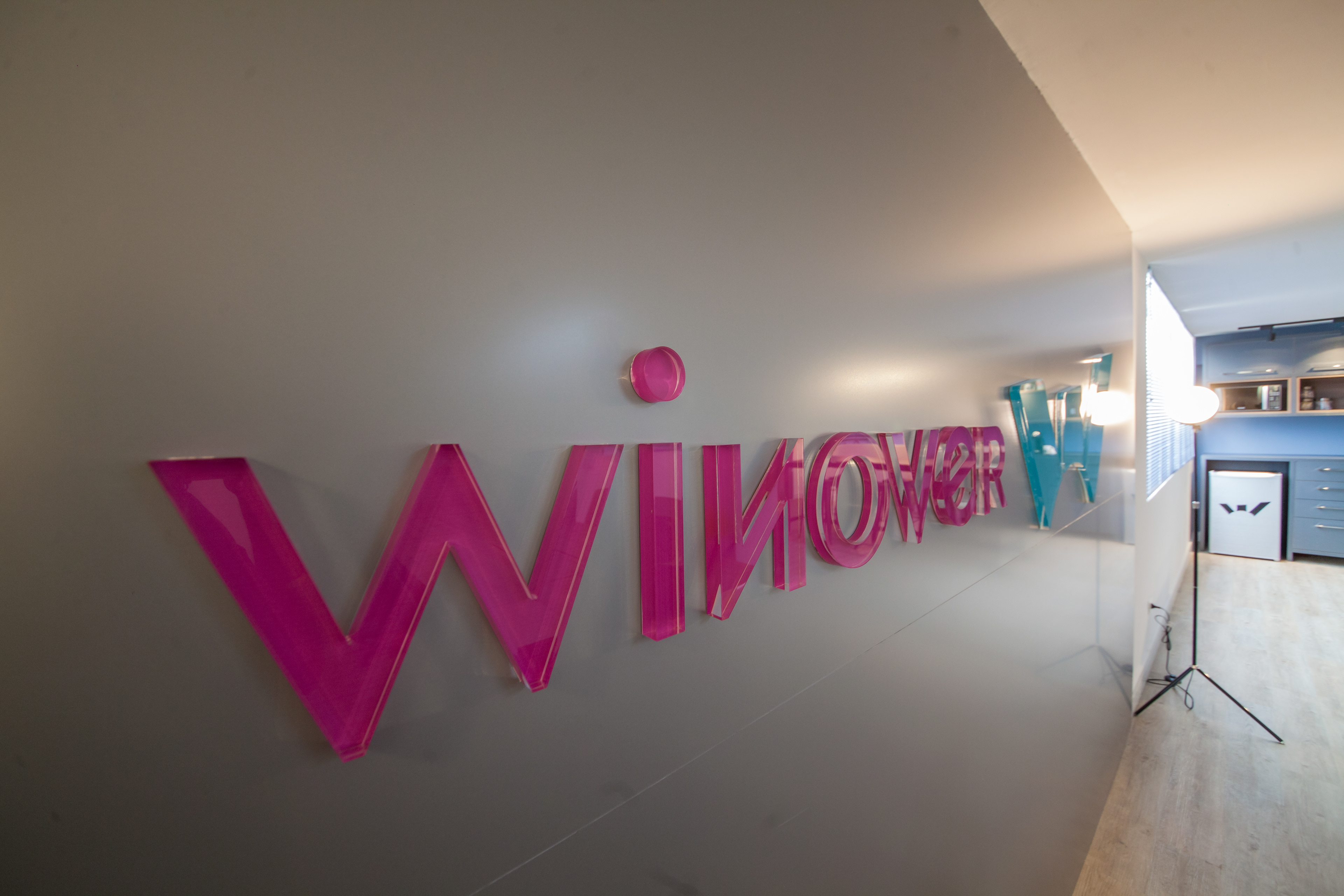 Identidade visual, Design de Interiores e direção de arte das instalações da Winover em Mogi das Cruzes (SP). Cliente que atua na recuperação de crédito e é referência no Brasil e exterior.